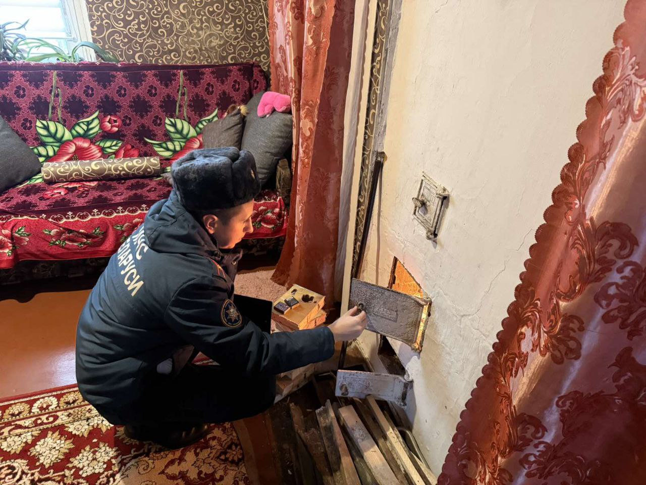 Не остаются без внимания и дома с печным отоплением. Огнеборцы визуально осматривают печи на наличие трещин, которые могут стать причиной пожара, и проверяют, уложен ли перед топкой негорючий предтопочный лист.