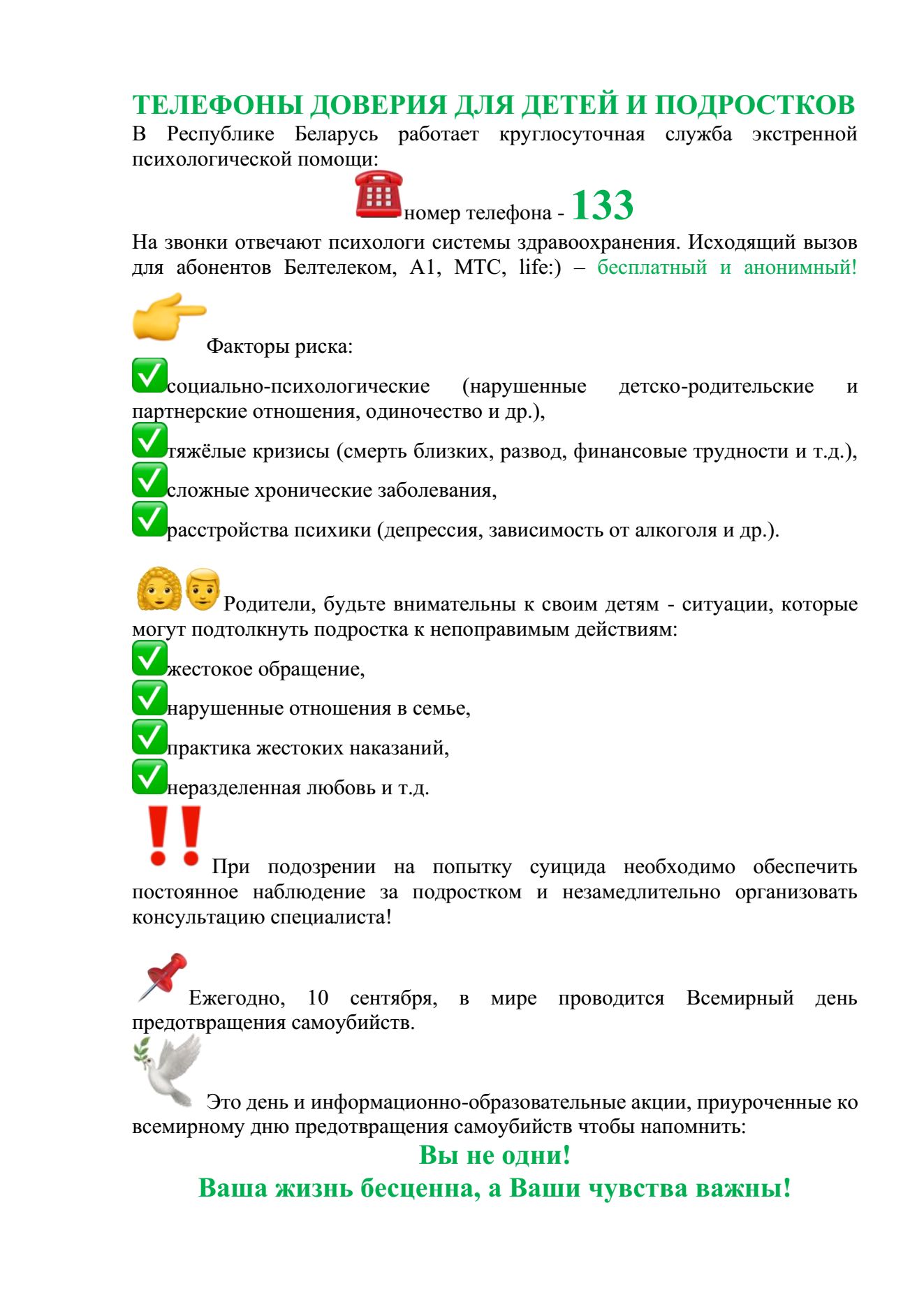 В Республике Беларусь работает круглосуточная служба экстренной психологической помощи