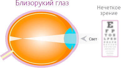 Миопия – это аномалия рефракции, при которой изображение фокусируется не на сетчатке, а перед ней. При этом человек плохо различает удаленные предметы. Это происходит из-за несоответствия длины глазного яблока и его светопреломляющих свойств.